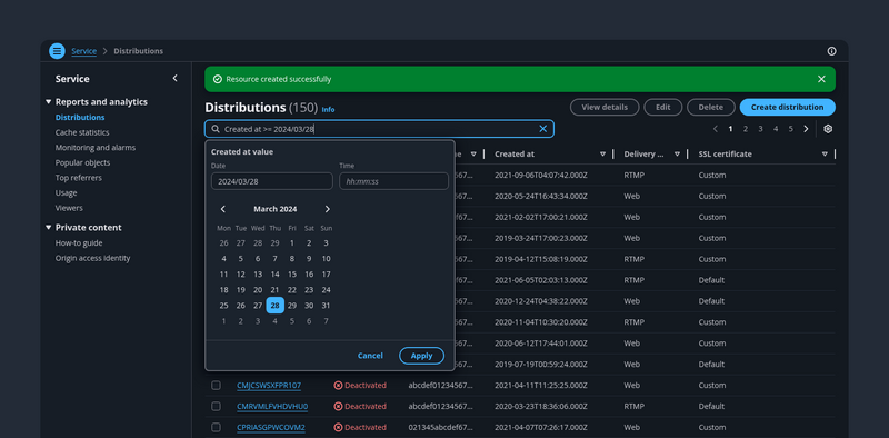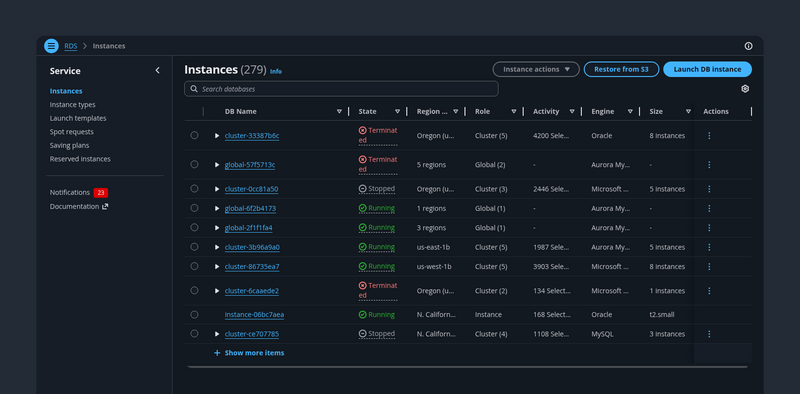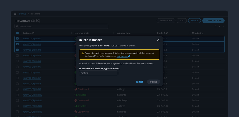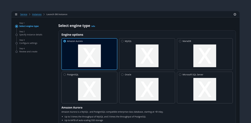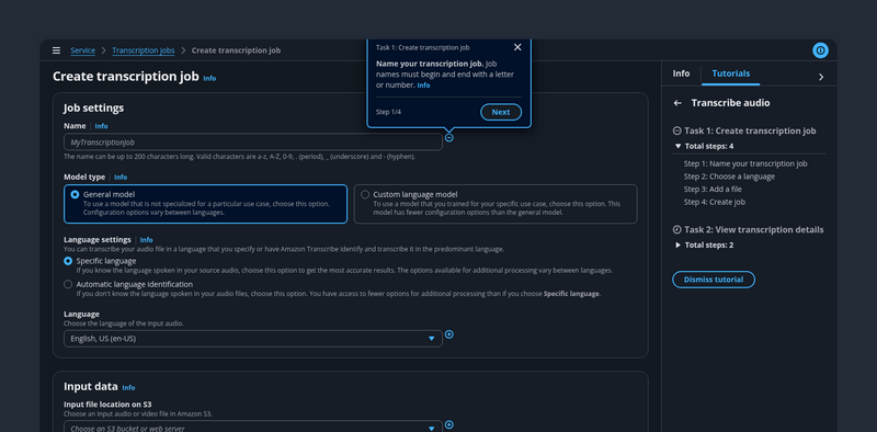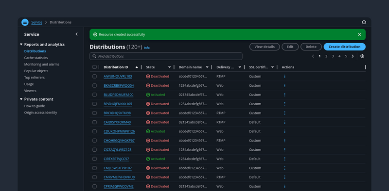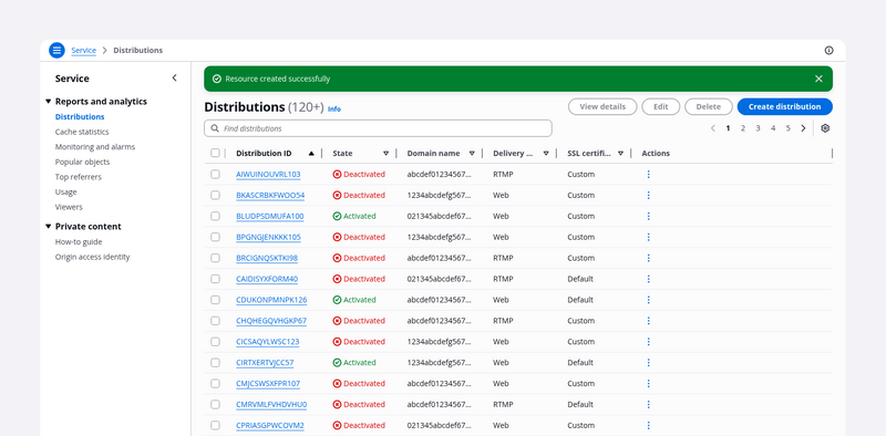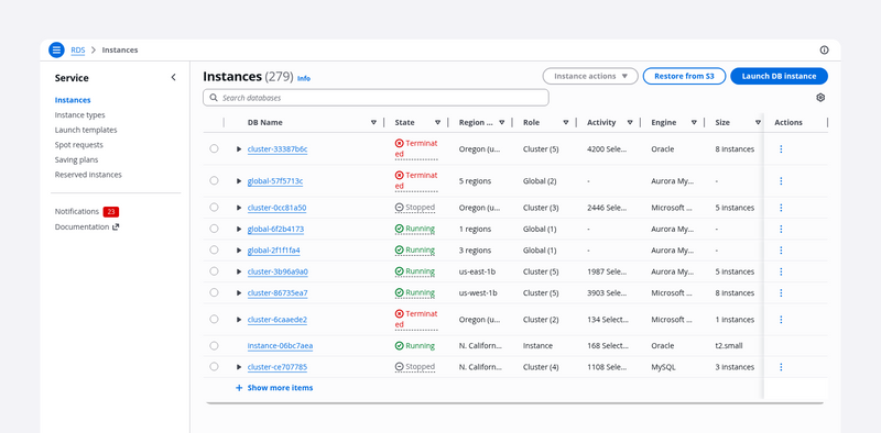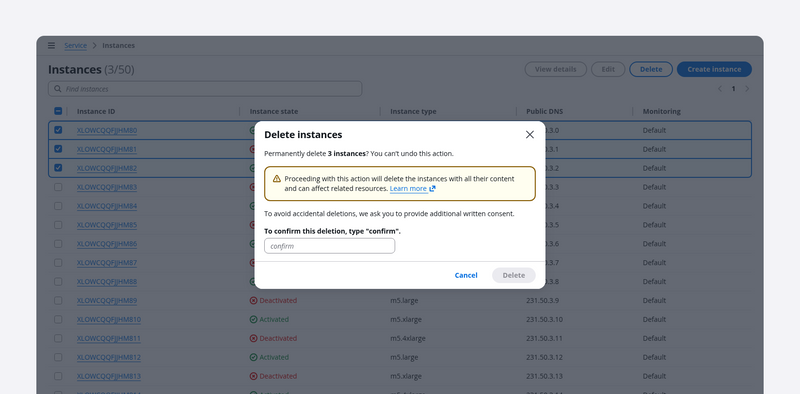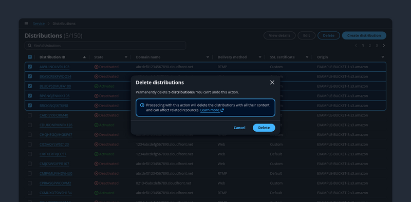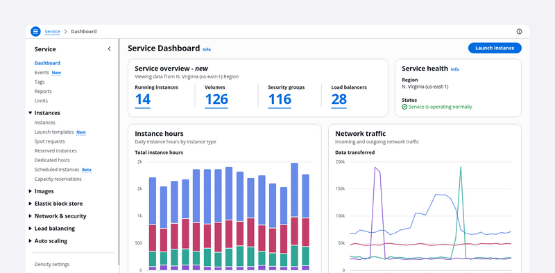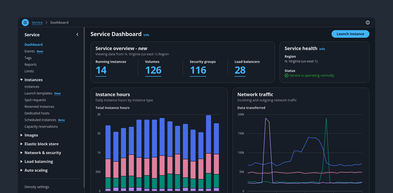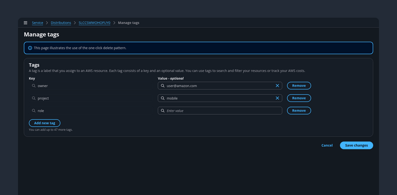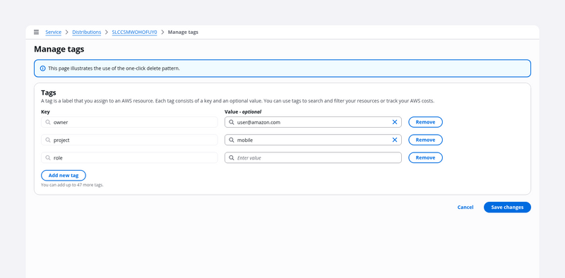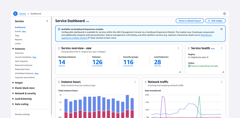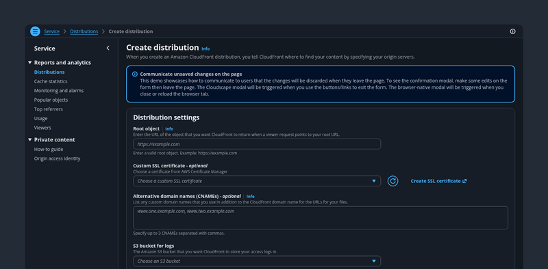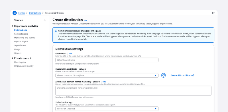 A demo is an example of a layout template using components. Use our demos to get a feel for the system, and see what services built with Cloudscape look like. Each demo opens in a new tab.