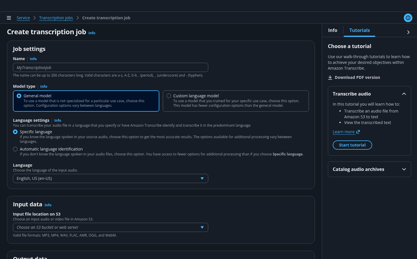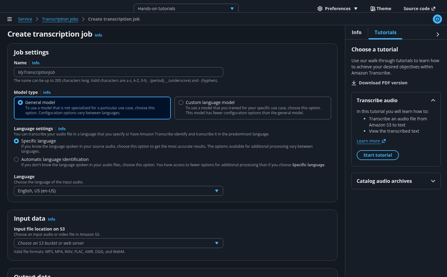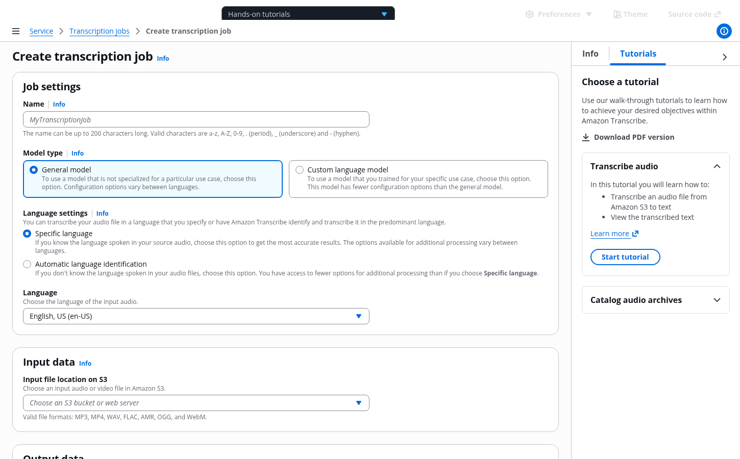 The tutorial panel lists all existing tutorials for a service.
