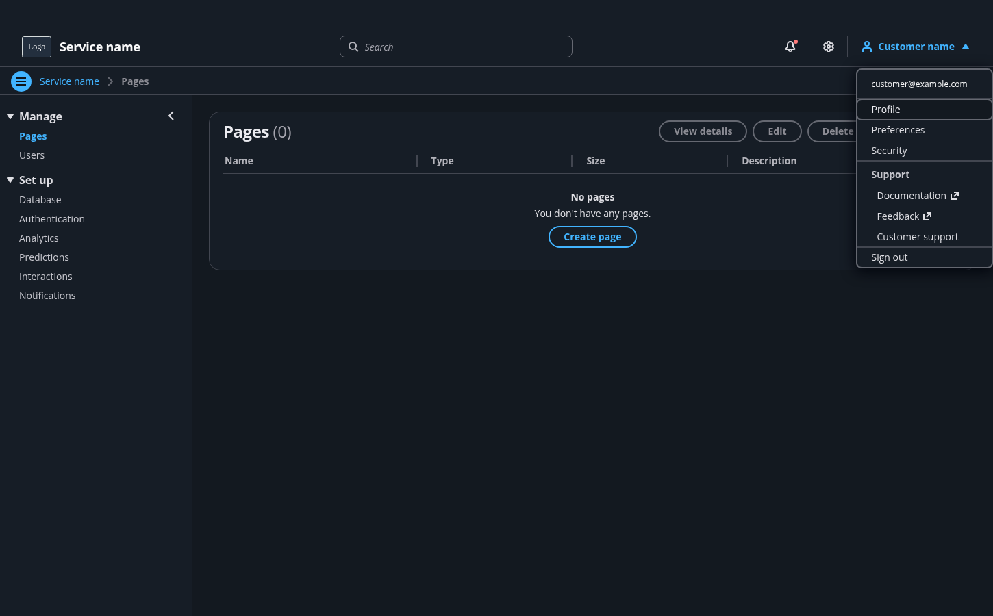 Top navigation provides global controls that help users use the product or service. It’s comprised of a collection of global functionalities that are separate from the product's structural navigation.