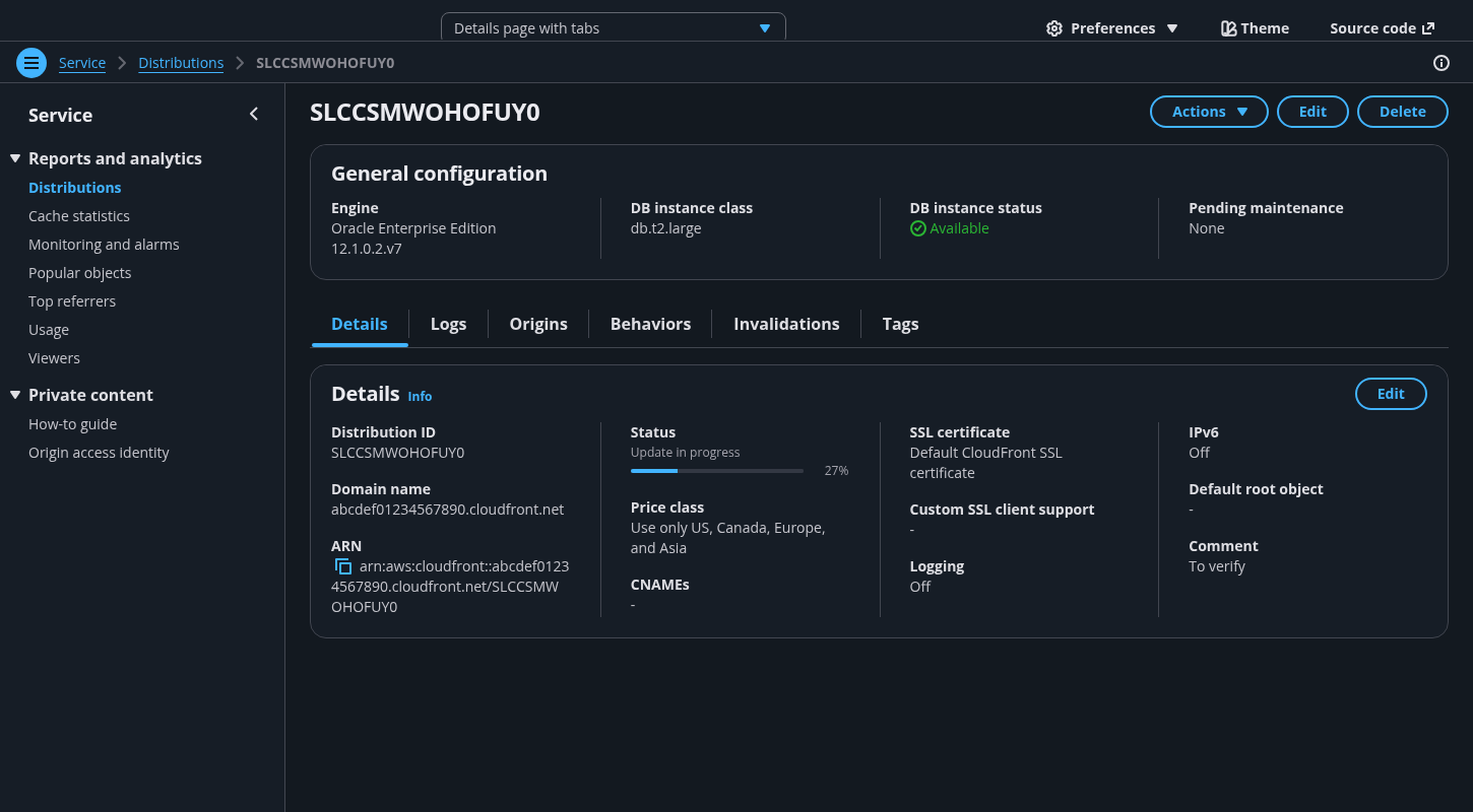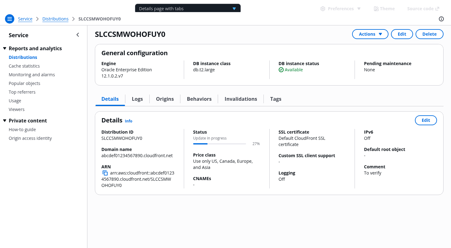 Users can use tabs to view the configuration details of a single resource on a single page. Users can choose each tab on the page to easily switch between different groupings of information in the same view.