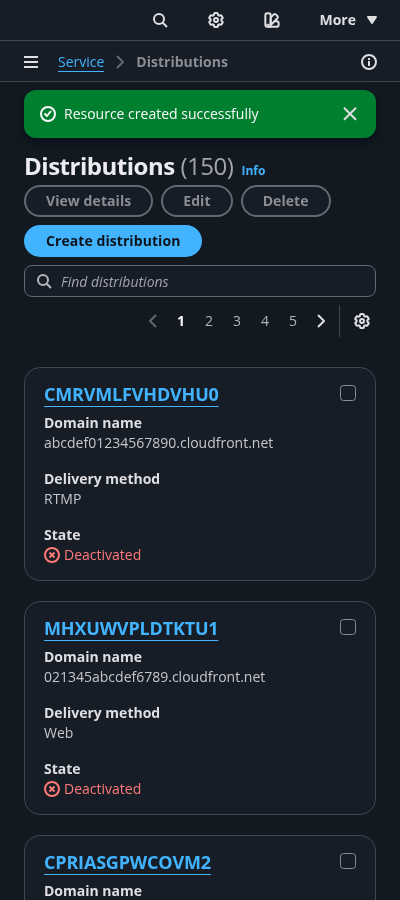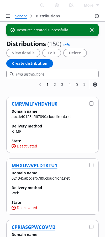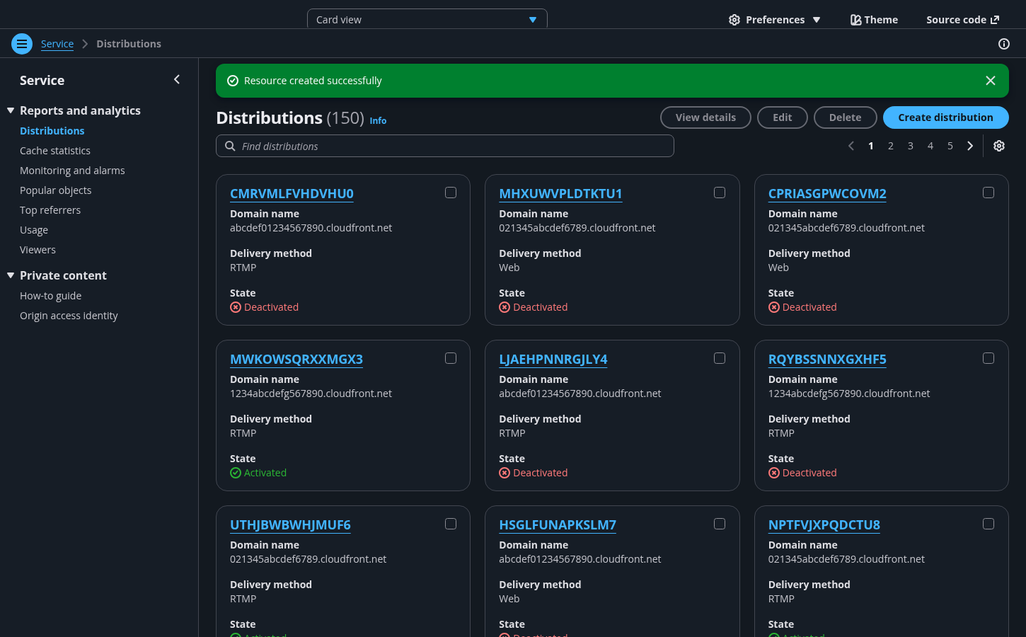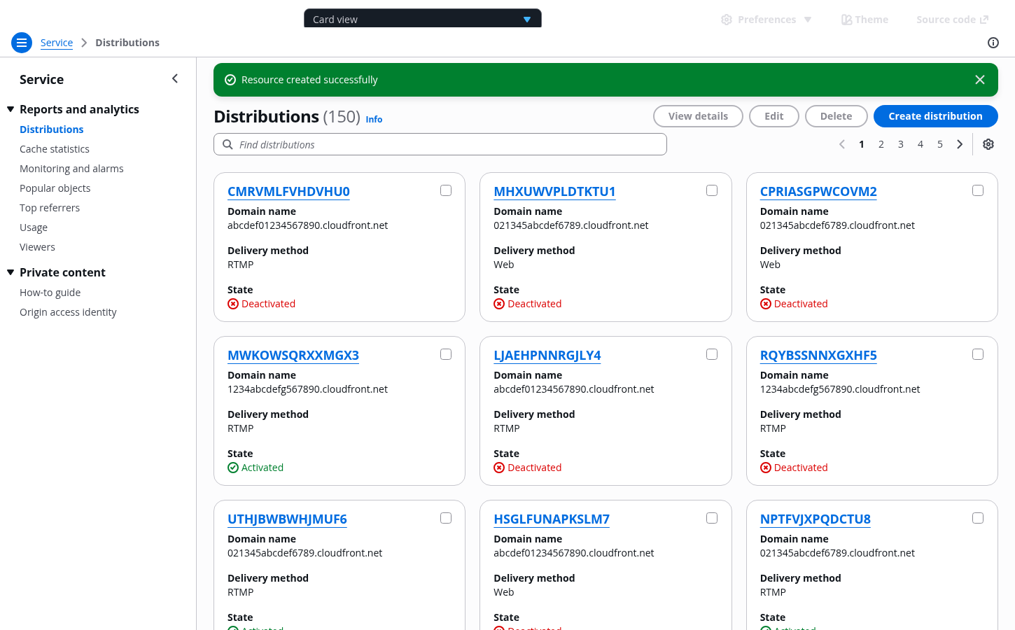 Cards view of all user resources within the AWS service.