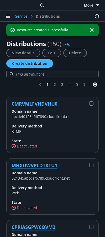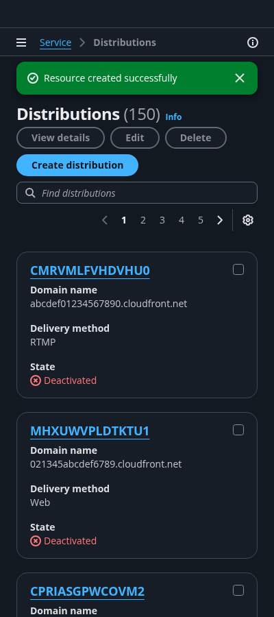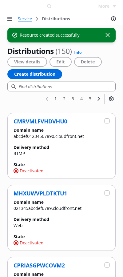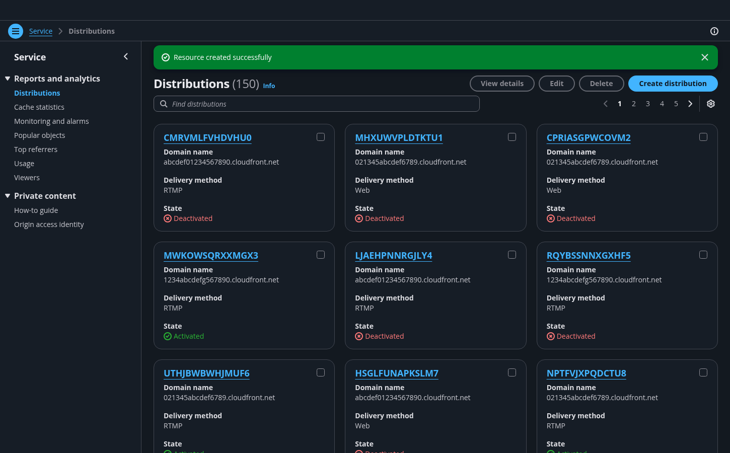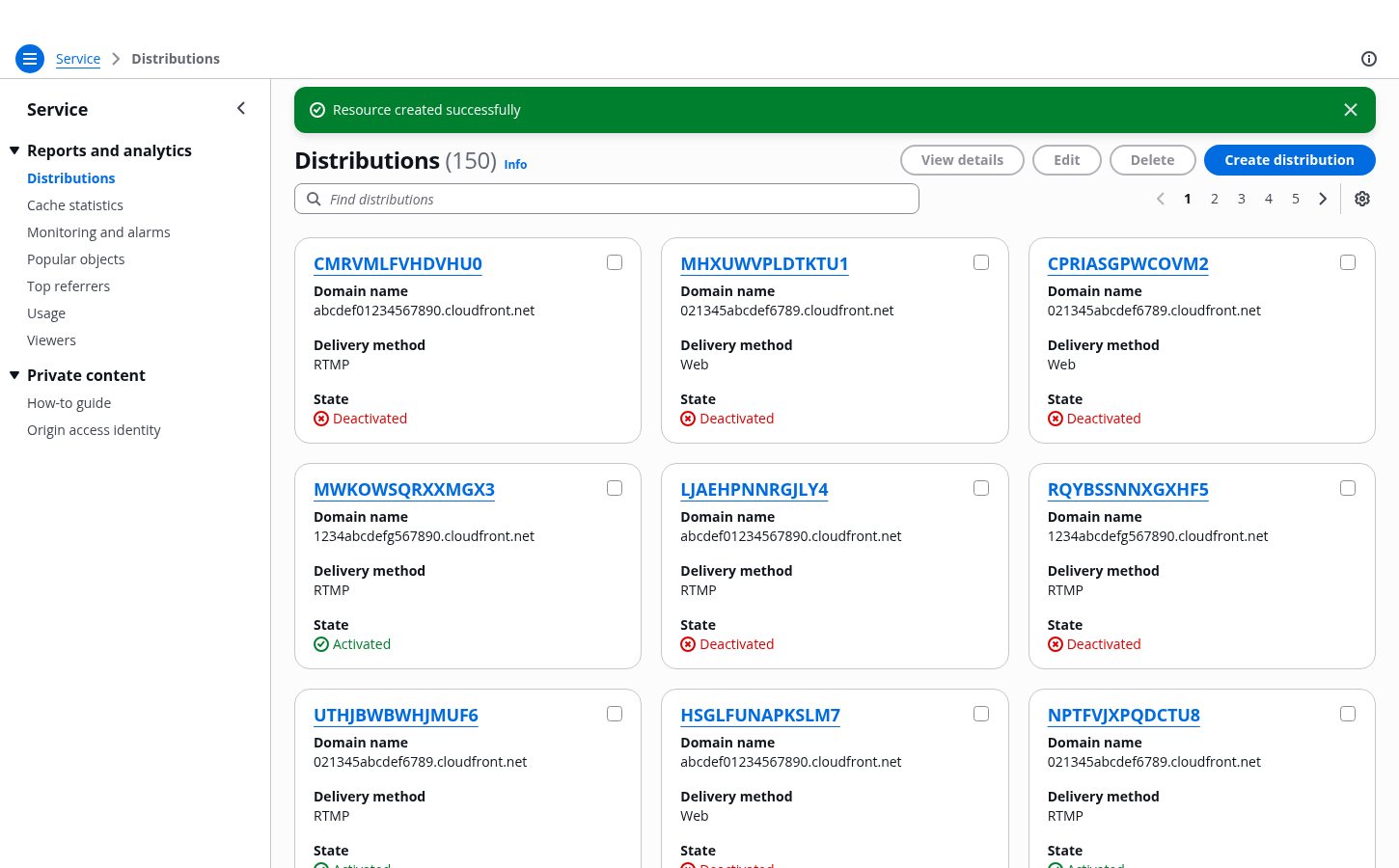 Cards view of all user resources within the AWS service.